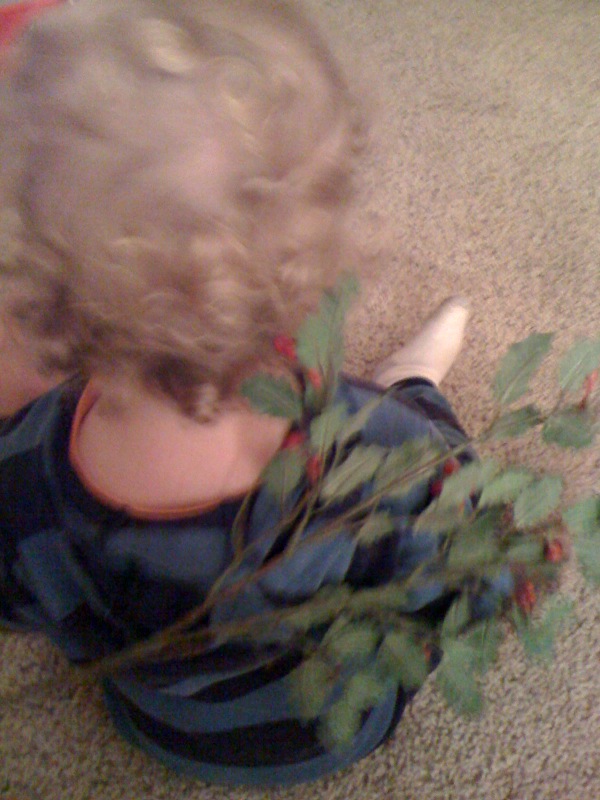 This evening Jackson was playing with a holly branch and it got caught in his hair. I tried to keep him still but it was bothering him too much.